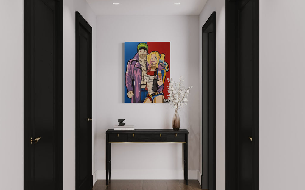 - This was a customer request piece. The customer wanted himself and his wifes face on his favorite characters, Harley Quinn and the Joker. 1 of 1. Signed with a certificate of authenticity. It also has the Bloony hologram number #0014 showing that is authentic.