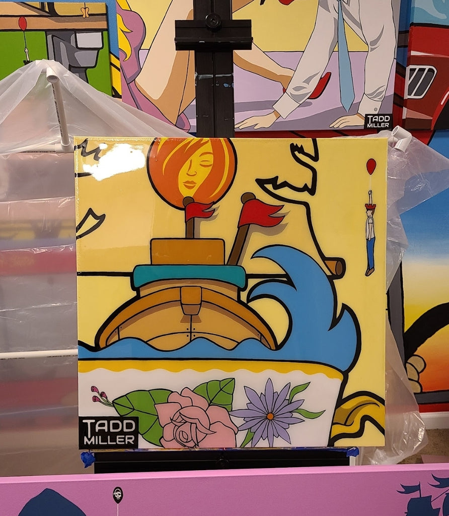 • This piece is an authentic acrylic painting by Tadd Miller. It's 1 of 1. It comes signed with a certificate of authenticity. It also has the Bloony hologram showing that is authentic.